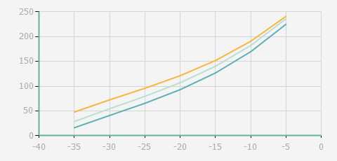 | 蒸發(fā)溫度 | 制冷量+/-5% | 能耗+/-5% | 現(xiàn)在能效+/-5% | 氣體流速+/-5% | 能效+/-7% | ||||