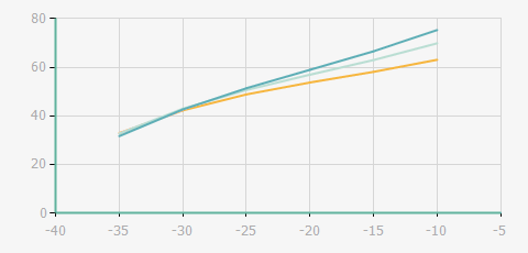 | 蒸發(fā)溫度 | 制冷量+/-5% | 能耗+/-5% | 現(xiàn)在能效+/-5% | 氣體流速+/-5% | 能效+/-7% | ||||